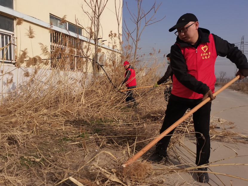 ? ? ? ? 34日,按照活動(dòng)統(tǒng)一安排,志愿者們紛紛抵達(dá)各自點(diǎn)位開(kāi)展統(tǒng)一活動(dòng),本次活動(dòng)主要是清理公司主次干道兩邊的雜草以及各種彩色垃圾。活動(dòng)中,身著紅色馬甲志愿者分工協(xié)作,首先由男同志們對(duì)周邊的蘆葦、鹽薅進(jìn)行地毯式收割,大家揮動(dòng)著鐮刀、鐵锨,干的十分起勁,顧不得漫天飛舞的蘆葦花和灰塵。女同志們負(fù)責(zé)用釘耙將割下的雜草以及死角里的彩色垃圾,摟到一起便于集中清理。在勞動(dòng)過(guò)程中大家互相幫助、互相合作,很好的展現(xiàn)了集體的團(tuán)結(jié)協(xié)作精神,有的同志手不小心被木板上的釘子劃傷了,擦干凈血接著干。經(jīng)過(guò)2個(gè)小時(shí)的清理,主次干道煥然一新。