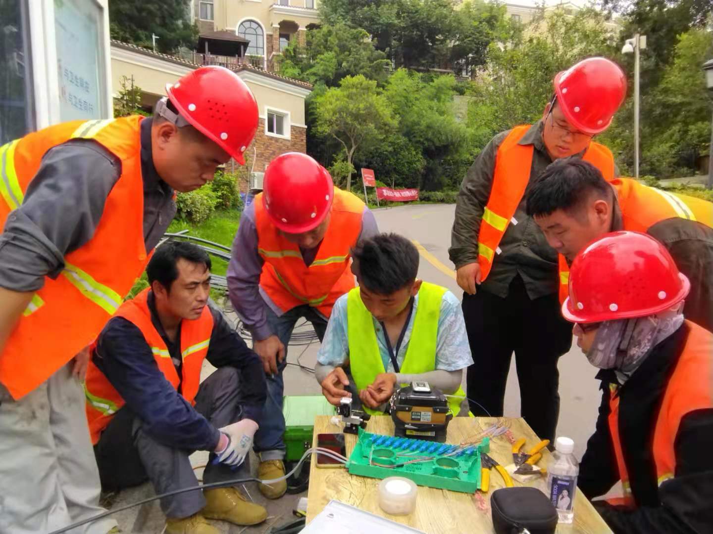 翔立分公司現(xiàn)場(chǎng)學(xué)習(xí)光交箱熔纖技術(shù)