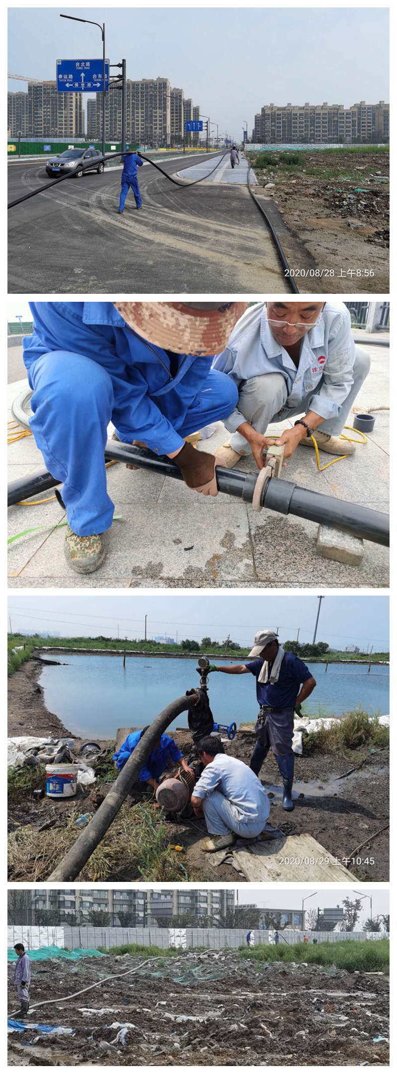 得此建議,翔立分公司立即組織動員,研究可行方案,從大浦工區(qū)借來扒鹽管道200米對接原黃化制鈣公司的鈣液輸送管道(全程穿越),架設(shè)臨時泵開始往回調(diào)鹵。但“天不遂人愿”,翔立人的一腔熱情卻被年久失修的報廢管道的損壞“化作了烏有”!頂管穿越管道壞在金橋路恒大御風(fēng)小區(qū)路邊,毫不氣餒的翔立人經(jīng)過三天的搶修,最終因損壞的管道太深(接近5米深)以及損壞程度嚴(yán)重而無法修復(fù)。