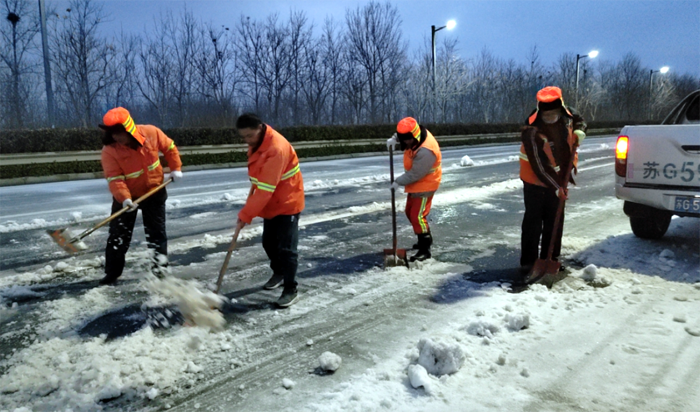219日至21,受持續(xù)大風寒潮天氣影響,給徐圩新區(qū)、板橋工業(yè)園區(qū)各條道路蓋上較厚冰層。為全力以赴掃雪除冰、排除隱患,悅升公司堅持“人動機動、雪停雪凈”原則,落實好“三包三聯(lián)”工作機制,實現(xiàn)道路通暢、安全出行,切實保障好廣大群眾正常生產(chǎn)生活秩序和生命財產(chǎn)安全。