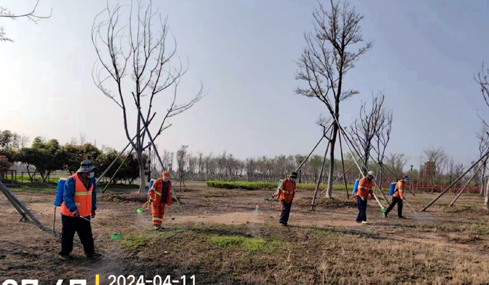 積極澆灌返青水。當(dāng)前,地溫回升快,苗木易萌芽,該班組采用“人工+機械”相結(jié)合的方式,全面啟動返青水集中澆灌工作,重點對園區(qū)喬木、果木、草坪等進(jìn)行全面灌溉,促進(jìn)苗木、草坪返青發(fā)芽。按照分種類、合理澆灌的原則,采取集中澆灌的方式最大限度減緩晝夜溫差對綠化植物的影響,入春后共澆水100余次,對落羽杉圓動力灌根2000棵,對大樹澆水1500棵,綠化澆水約30000平方米。