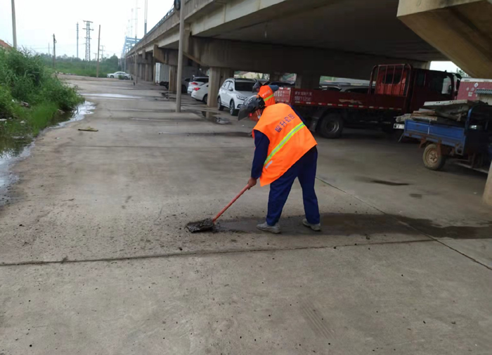 該公司針對(duì)橋面泄水孔、泄水管、排水道等地方安排專人檢查,養(yǎng)護(hù)清理的垃圾及時(shí)處理到位,不得堆放在泄水孔周邊。汛期視情況加大清理頻次。橋下衛(wèi)生死角雜物集中撿拾、打包、裝袋 、回場(chǎng)。橋面護(hù)欄亂懸亂掛廣告、標(biāo)語徹底清除及時(shí)沖洗,恢復(fù)原貌、露出底色。橋梁伸縮縫采取人工與機(jī)械結(jié)合重點(diǎn)沖洗清掃,保障伸縮縫干凈整潔。目前,所管轄區(qū)大小橋梁已經(jīng)水洗清掃整治到位。有效降低橋揚(yáng)塵現(xiàn)象的發(fā)生,增強(qiáng)行車安全系數(shù),全面提升園區(qū)道路環(huán)境質(zhì)量